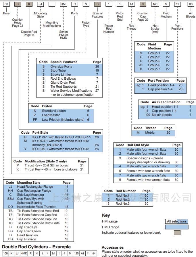 型号代码63CTCHMIRNS24MC260C1122对应Parker的HMI系列液压缸,其详细配置和规格如下: